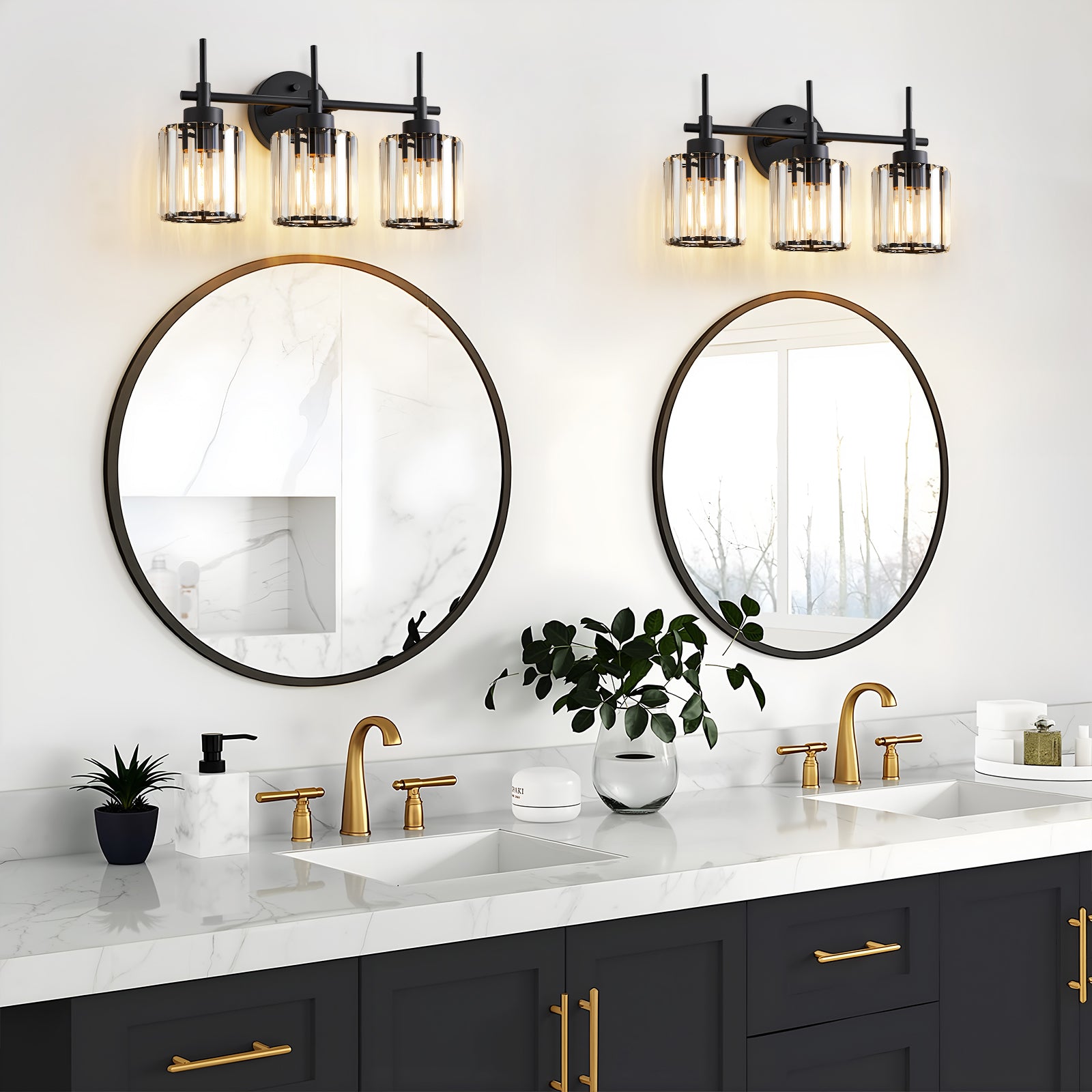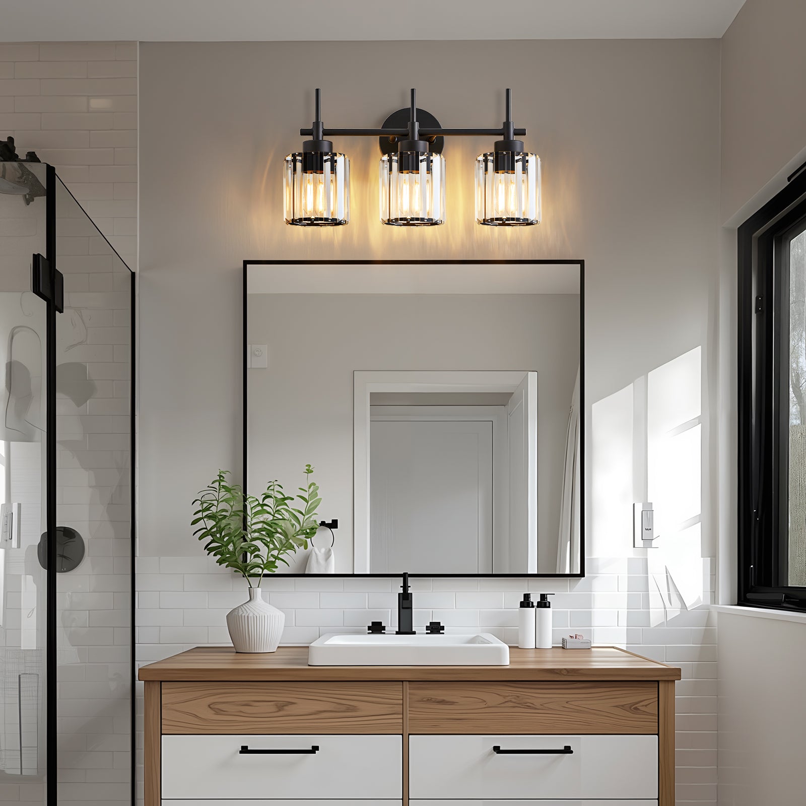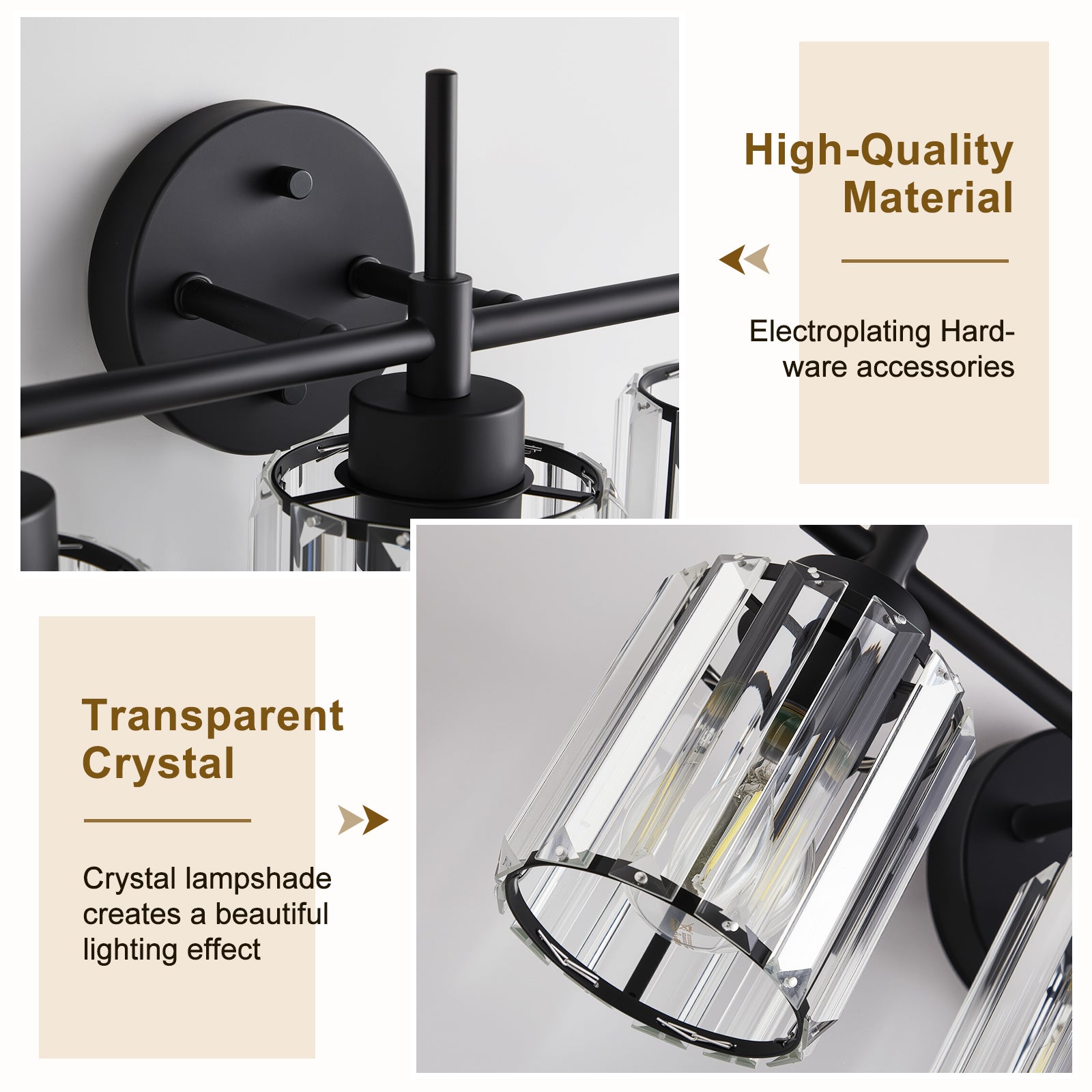 - Crystal Vanity Light Fixture: Bathroom light fixtures special Featuring a metal structure and high-quality crystal cover with special cutting. It is bright and romantic, can create a beautiful lighting effect. The thick clear glass shades emit a beautiful glow, creating a pleasant lighting atmosphere outside your home or inside your room