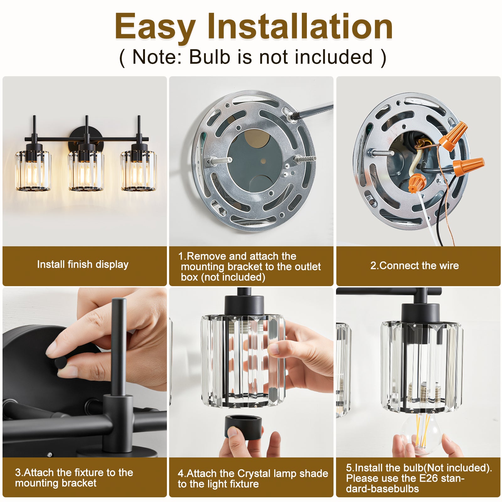 - Easy Installation: Bathroom vanity lights over mirror includes all mounting hardware for quick and easy installation. And then connect the wires, place the glass shade, and insert the bulb