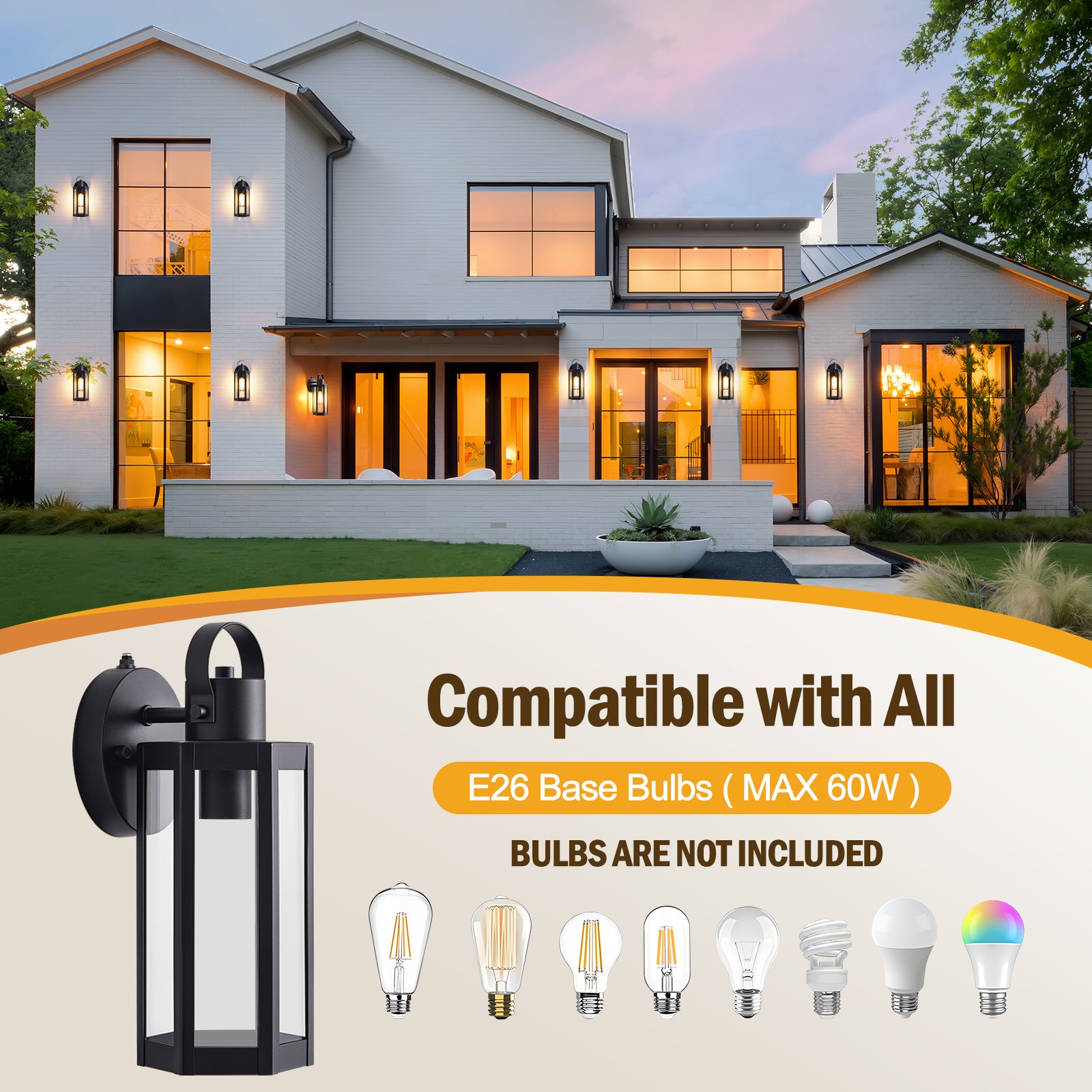 - Fit Various Bulb: Exterior lighting fixtures suit multiple E26 bulbs, including LED, CFL, incandescent, halogen, etc. Providing flexibility in choosing the right type of lighting for your needs. (Note: Bulbs are NOT included, please do not use smart or sensor bulbs, otherwise these porch light fixture wall mount may not work properly.)