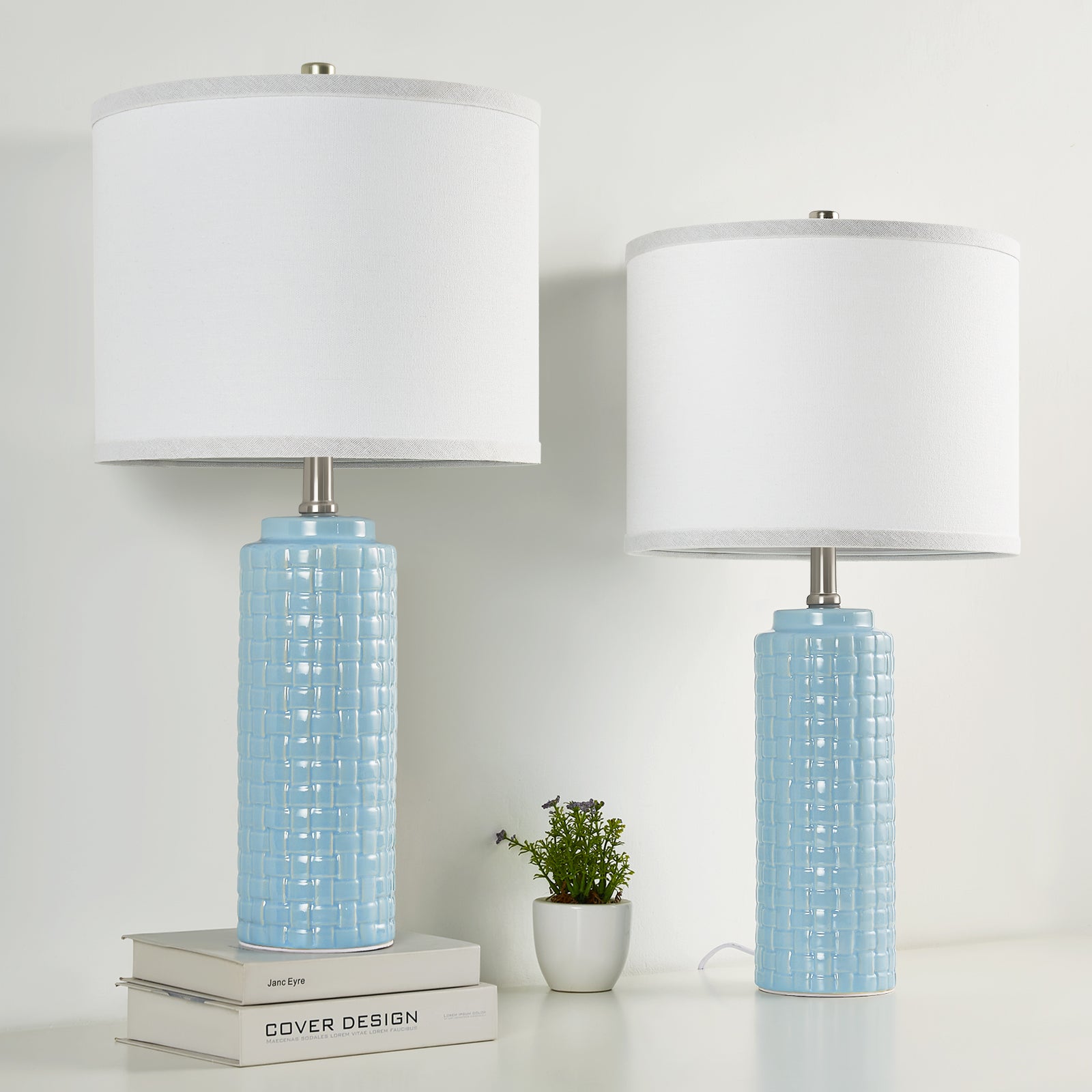 - 【High-quality & Easy to Assemble】This set living room lamps easy to assemble.Measuring 24.8'' height with a 12-inch wide shade, High-end Ceramic lamp body will not fade as the time goes, durable and convenient to maintain. This bedroom lamps are easy to install without tools. Following the instruction to assemble this lamp shade.