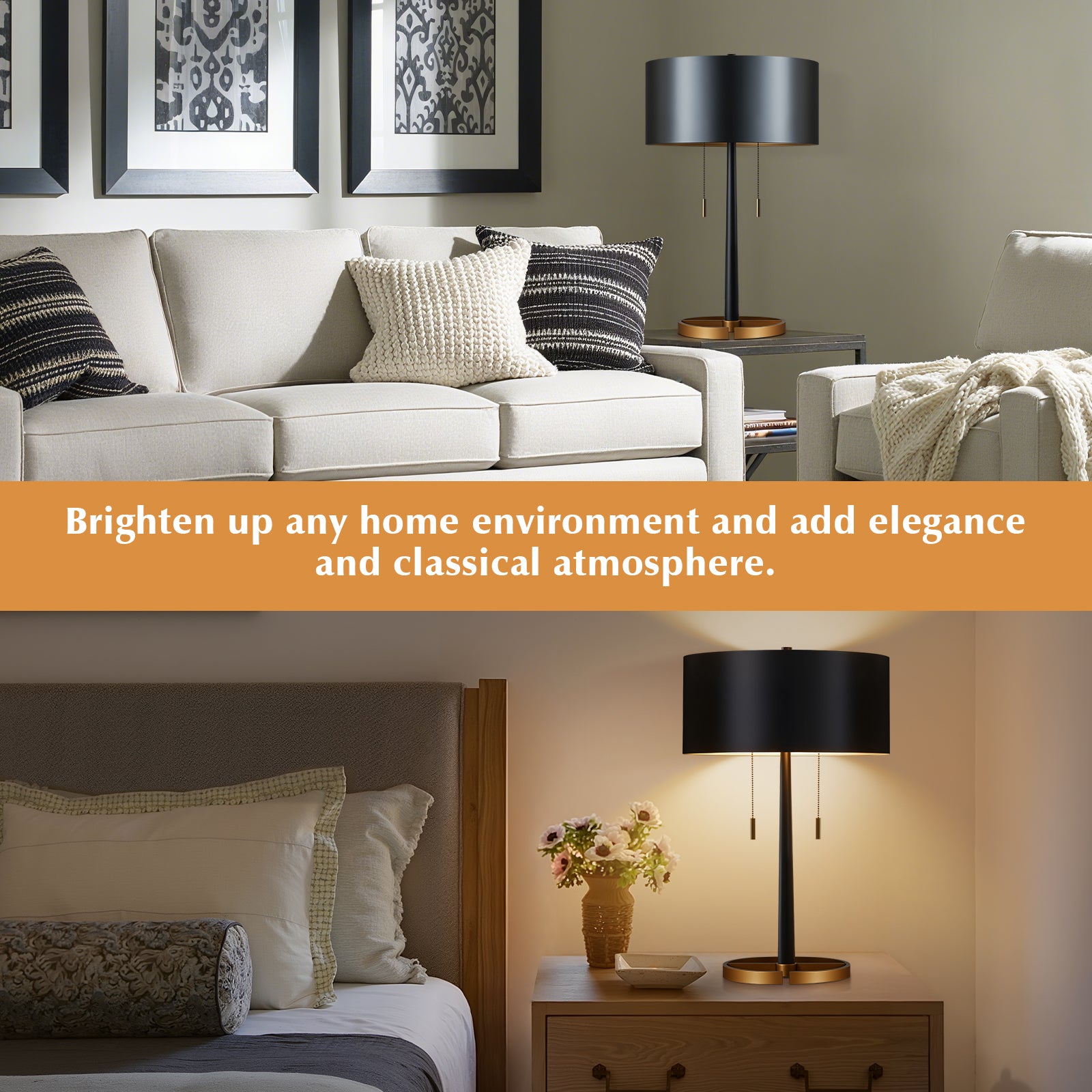 Add a touch of industrial charm to your space with the Metal Table Lamp. Built with a durable all-metal construction, this sturdy lamp features a classic pull-chain switch for easy and reliable operation. Standing at a compact 24 inches, it's perfectly sized for desks, shelves, and bedside tables. You need to purchase two additional A19 9W LED bulbs (3000K), With simple assembly, you can enjoy its warm, inviting light in just minutes.