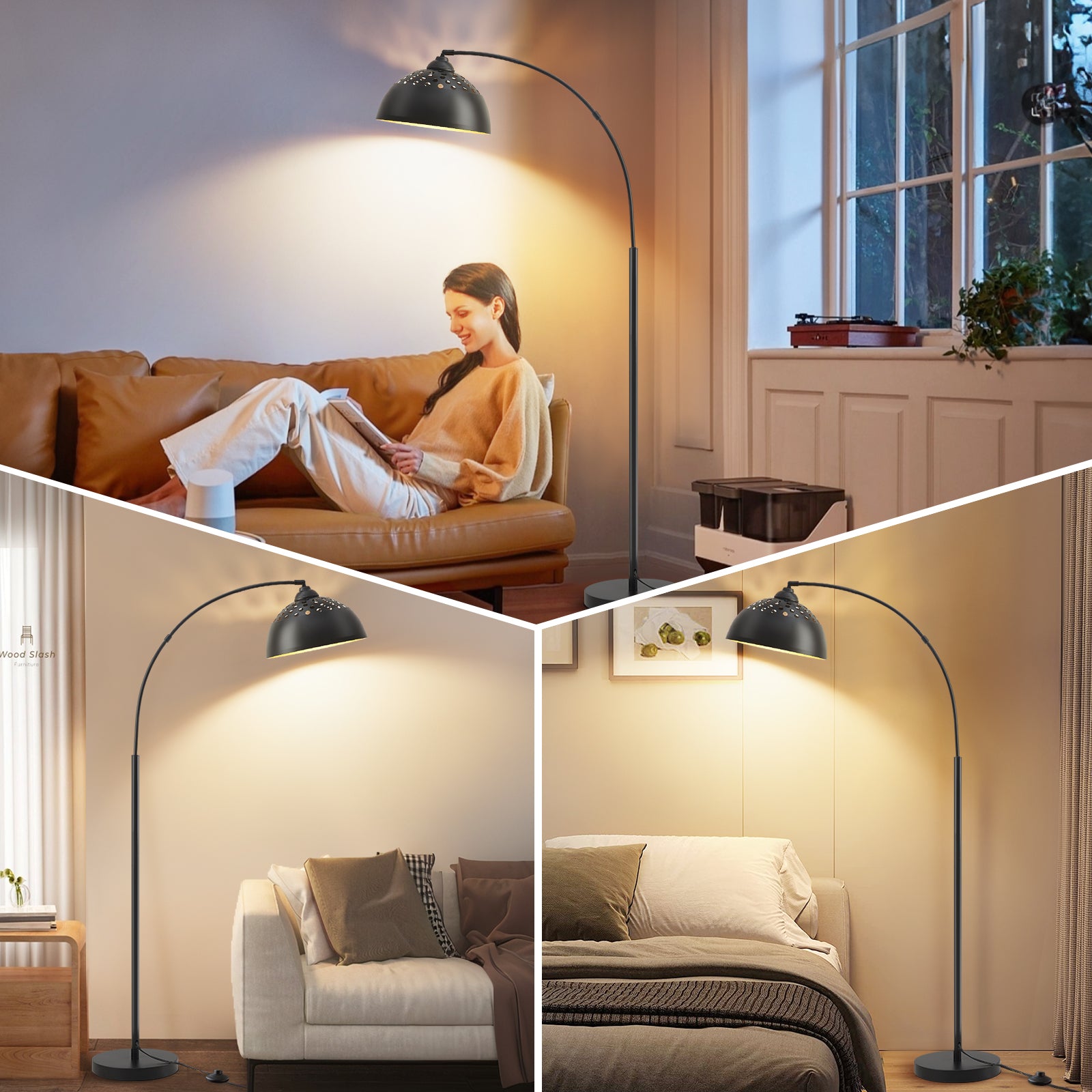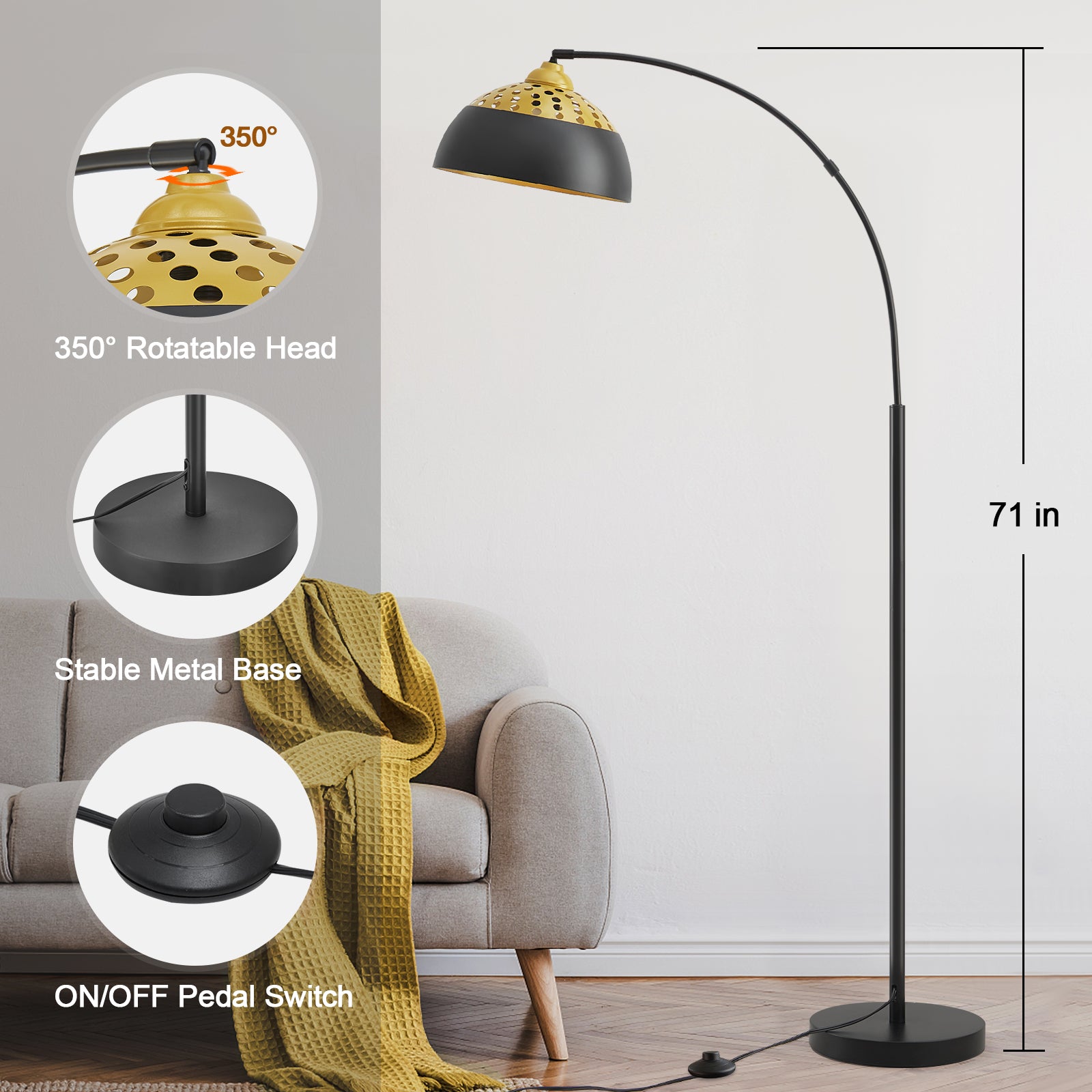 NATYSWAN 71" Arc Floor Lamps for Living Room, Modern Standing Lamp with Adjustable Hanging Metal Hollow Shade, Tall Pole Lamp with Foot Switch, Over Couch Arched Reading Light for Bedroom, Office