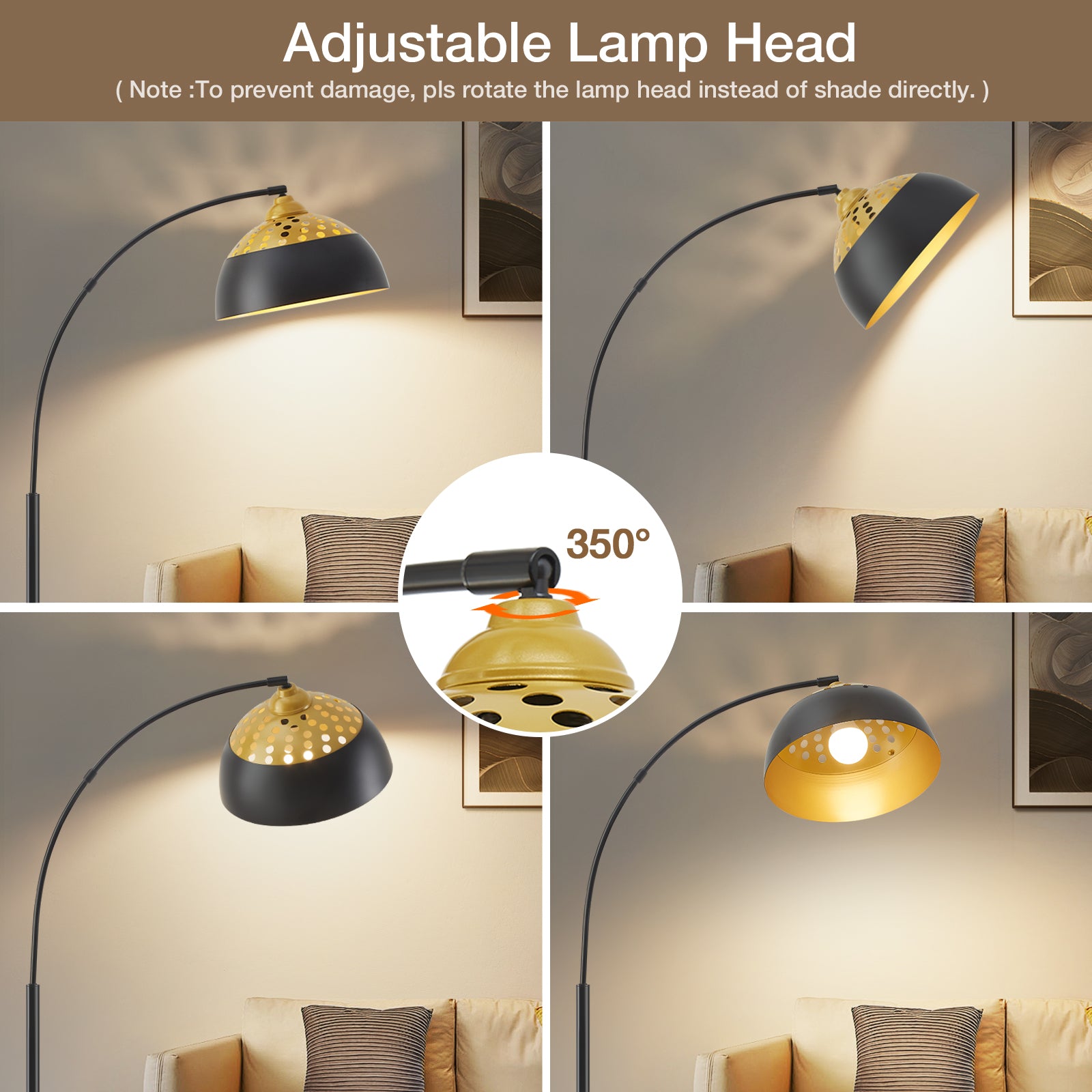- The metal hollow lampshade of the tall lamp can be rotated up to 350°horizontally or 180°vertically, directing the light as needed. You can adjust the overhead lamp to the desired angle to brighten the dark corners. Note: To avoid damage, please hold the toppest join end of lamp pole simultaneously when rotate the lamp head.
