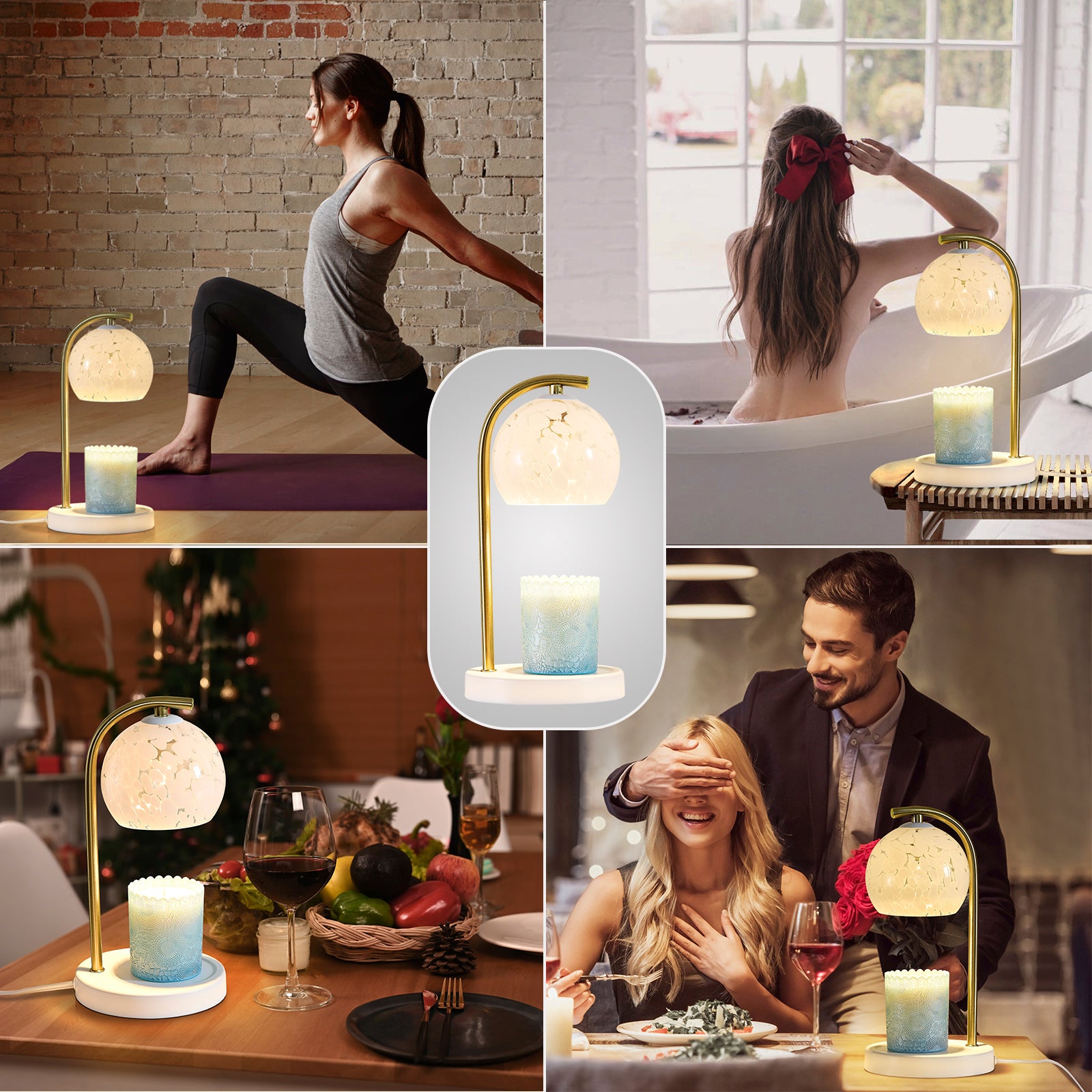- The candle wax warmer releases fragrance by gently melting candles from top to bottom using a 35W halogen bulb, providing the purest and safest scent. The candle warmer lamp with a timer eliminates open flames, smoke, and pollution, reducing the fire risk. You can enjoy the continuous aroma of candles safely in your home