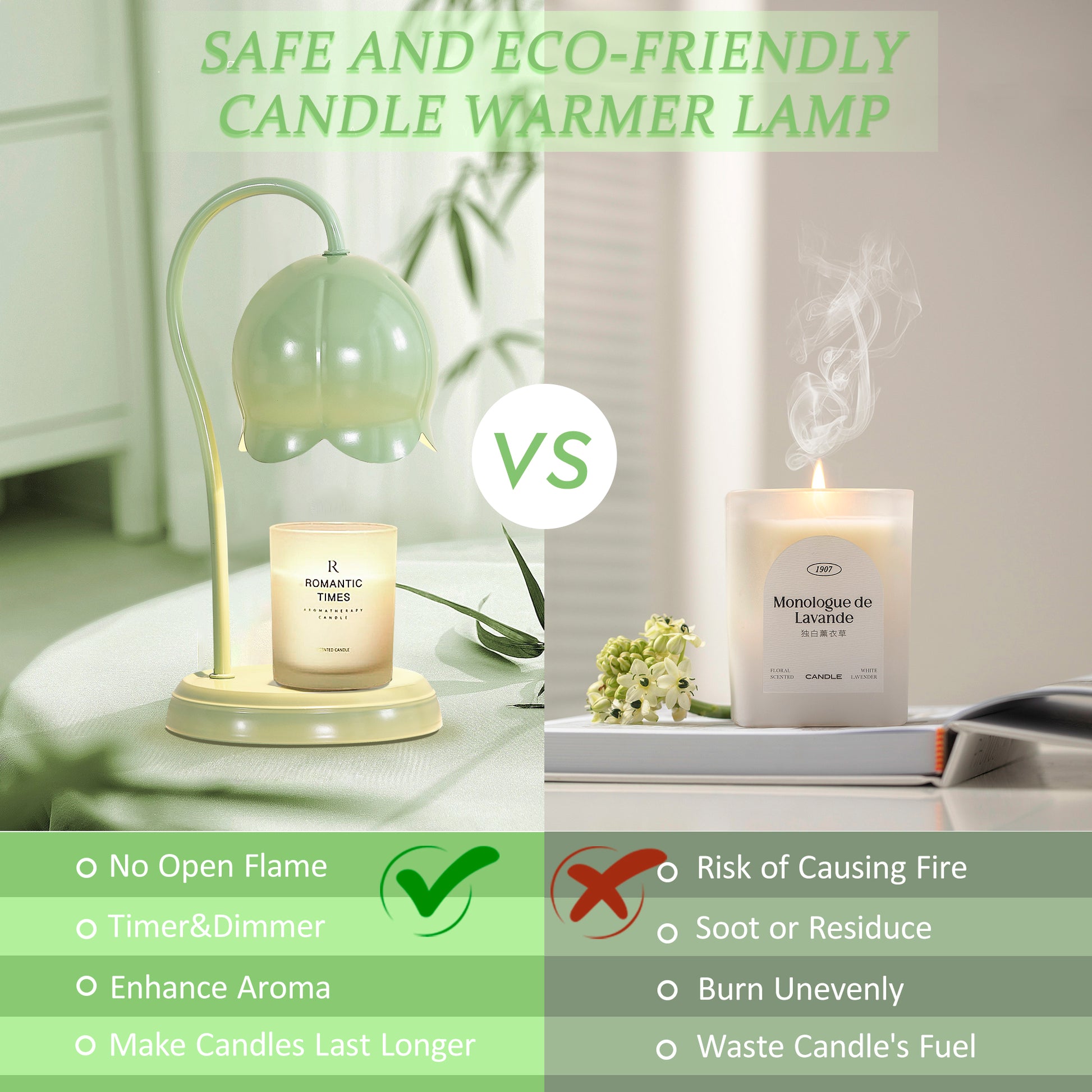 - 【Candle Warmer Lamp With Timer】If you always worried about starting a fire When you forgot to blow out a candle,This candle warmer takes away the worry. Candle warmer is Flameless and Smokeless which will greatly reduces the risks of fire concerns and keep you away from any hazardous substances.