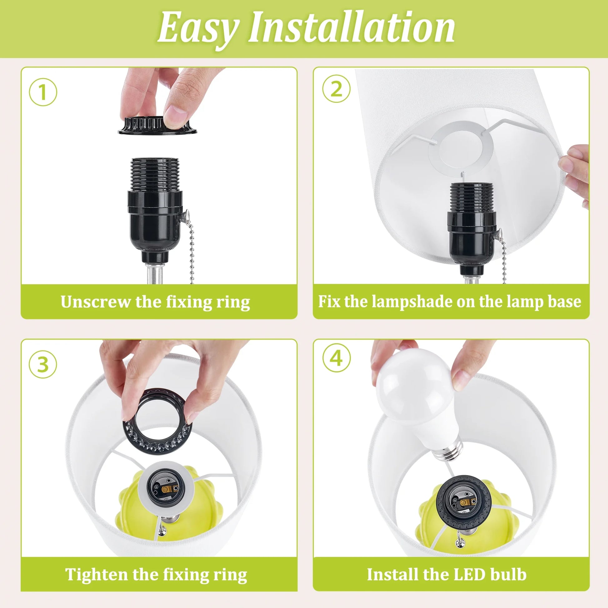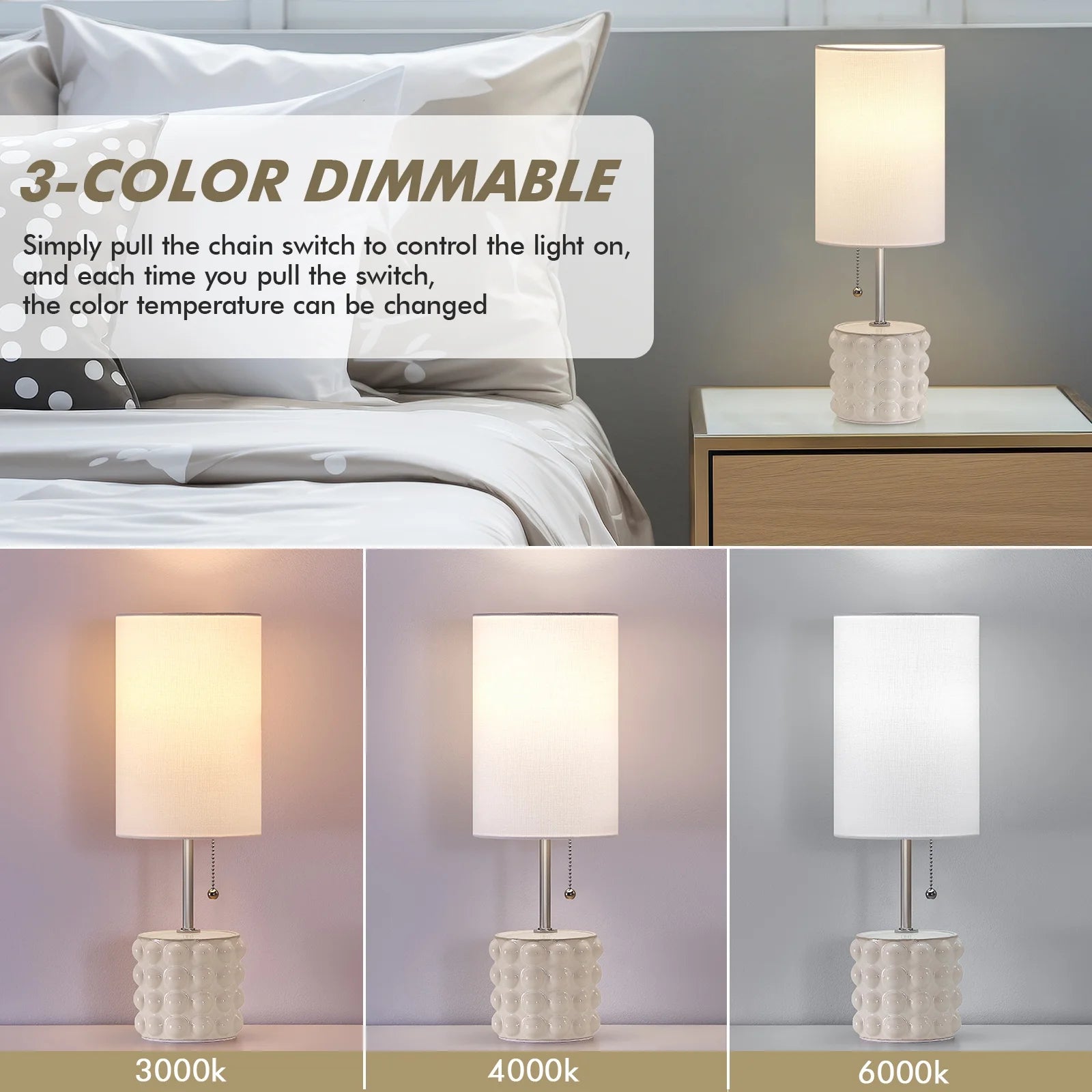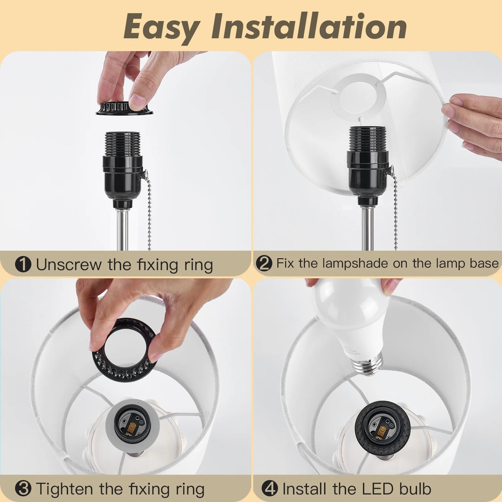 - 【3-Way Dimmable Table Lamps】There is a Pull Chain under the lampshade of the desk lamp, which can be gently pulled down to open and close, and its brightness will change once (low, medium, high)This function ensures that you have the perfect lighting ambiance for every moment, whether it’s reading a book, working on a project, or simply setting a mood. Perfect for bedroom, and living room