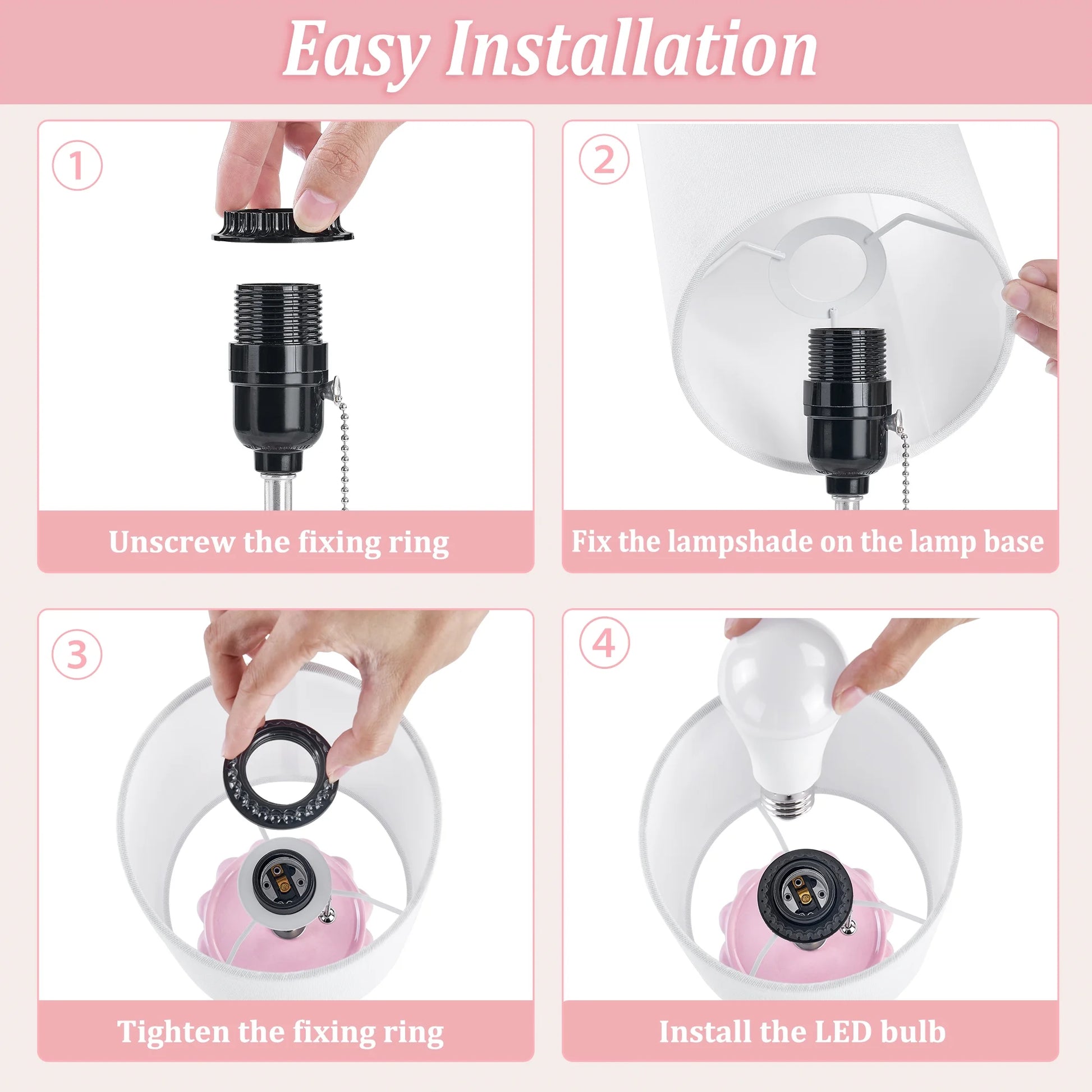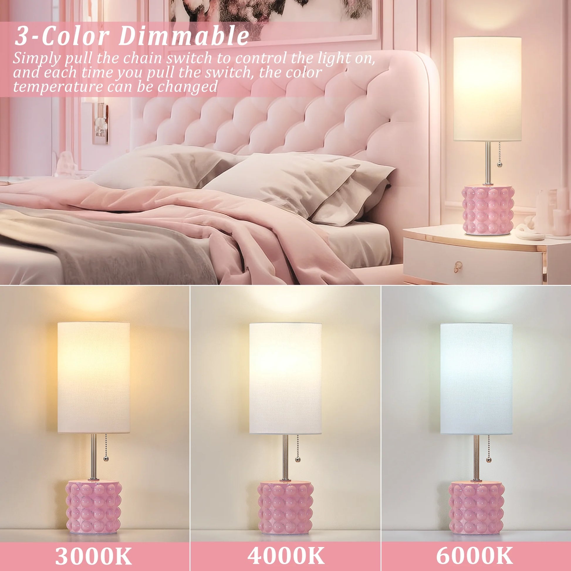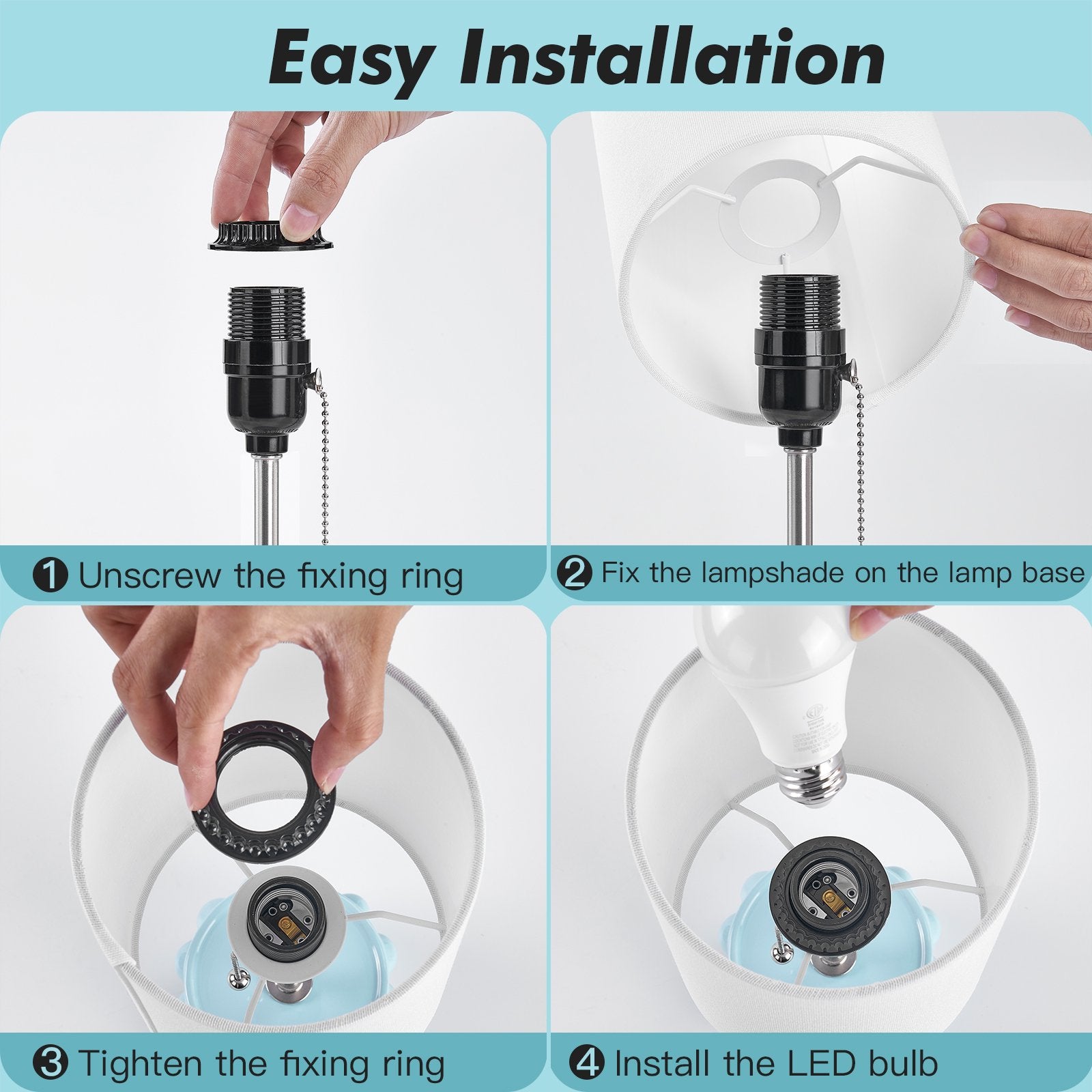- 【3-Way Dimmable Table Lamps】There is a Pull Chain under the lampshade of the desk lamp, which can be gently pulled down to open and close, and its brightness will change once (low, medium, high)This function ensures that you have the perfect lighting ambiance for every moment, whether it’s reading a book, working on a project, or simply setting a mood. Perfect for bedroom, and living room