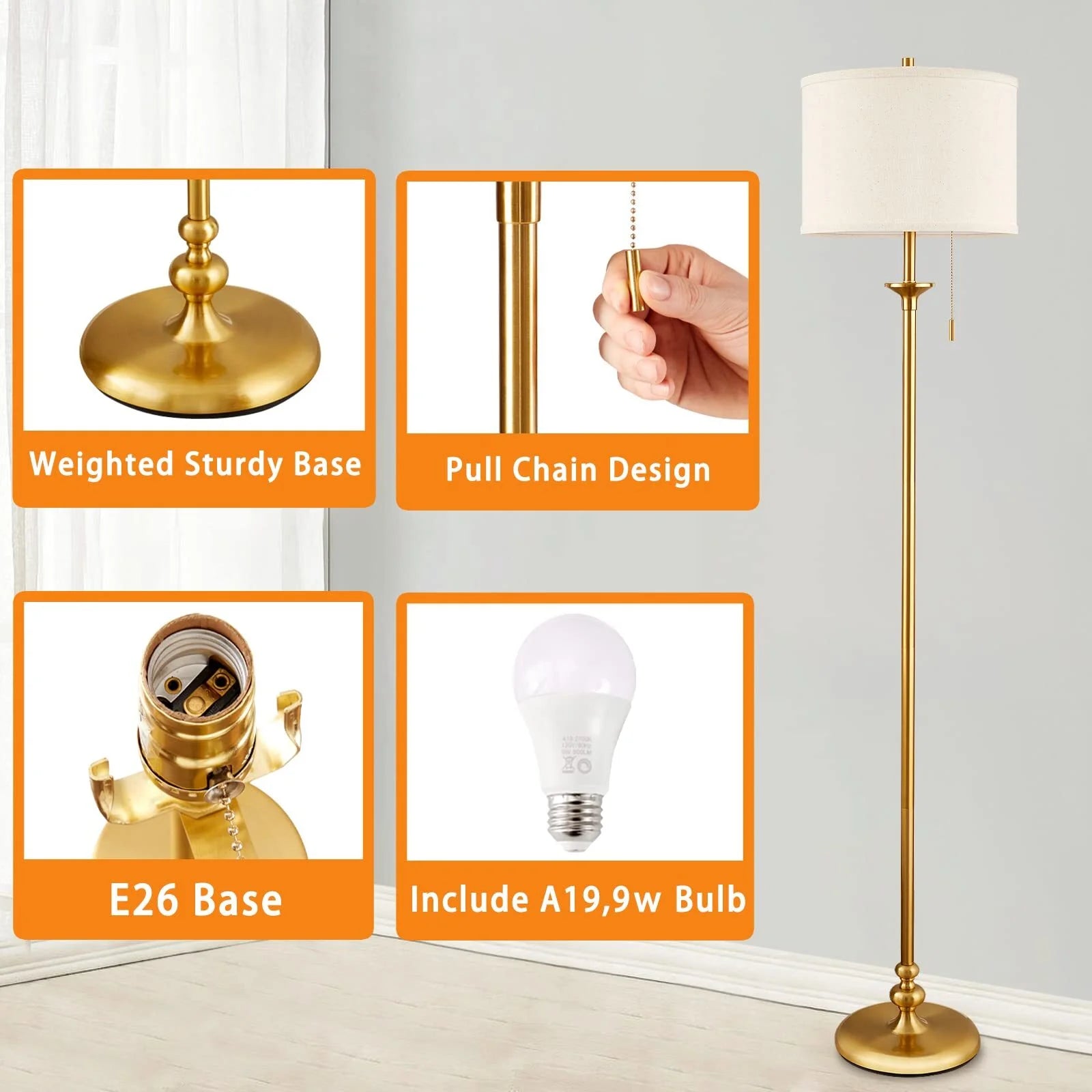- 【Easy to Assemble】Assembly of this stand up lamp couldn’t be easier, you can twist the poles together, insert them in the base and do a quick lamp shade assembly. Only takes few minutes from start to finish. Pulling chain easily to control the light on and off. Simple in shape, prominent in function, easy to operate and use, without cumbersome design, it is very suitable as a gift for your family and friends! (with an user manual)
