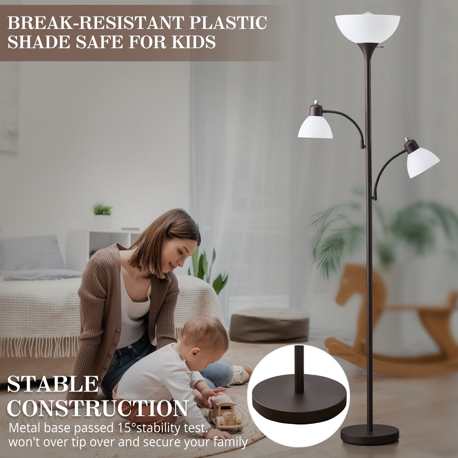- 【3 LED Bulbs Included】Standing floor lamp includes 1 ST64, 2 A19 bulbs; Base type: E26 standard; Bulb lifespan: 25,000+ hours, can last over 20 year life with normal use. The advanced bulb will not be over-burning or overheating after hours of use.