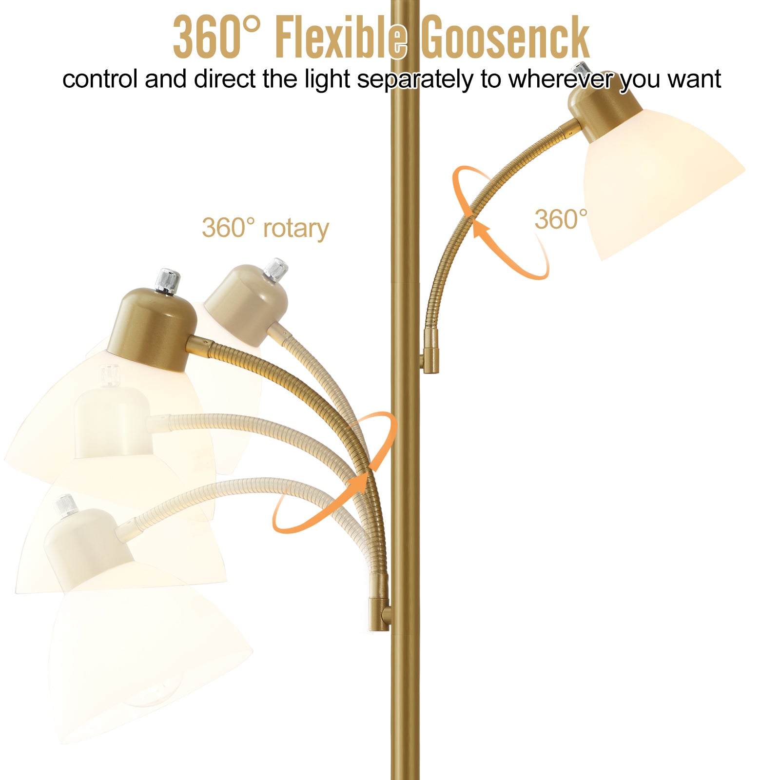 NATYSWAN Floor Lamps for Living Room,Torchiere Floor Lamp with 8W Adjustable Reading Lights, Morden Tall Lamps for Living Room, Bedroom, Office, 3 Bulbs Included