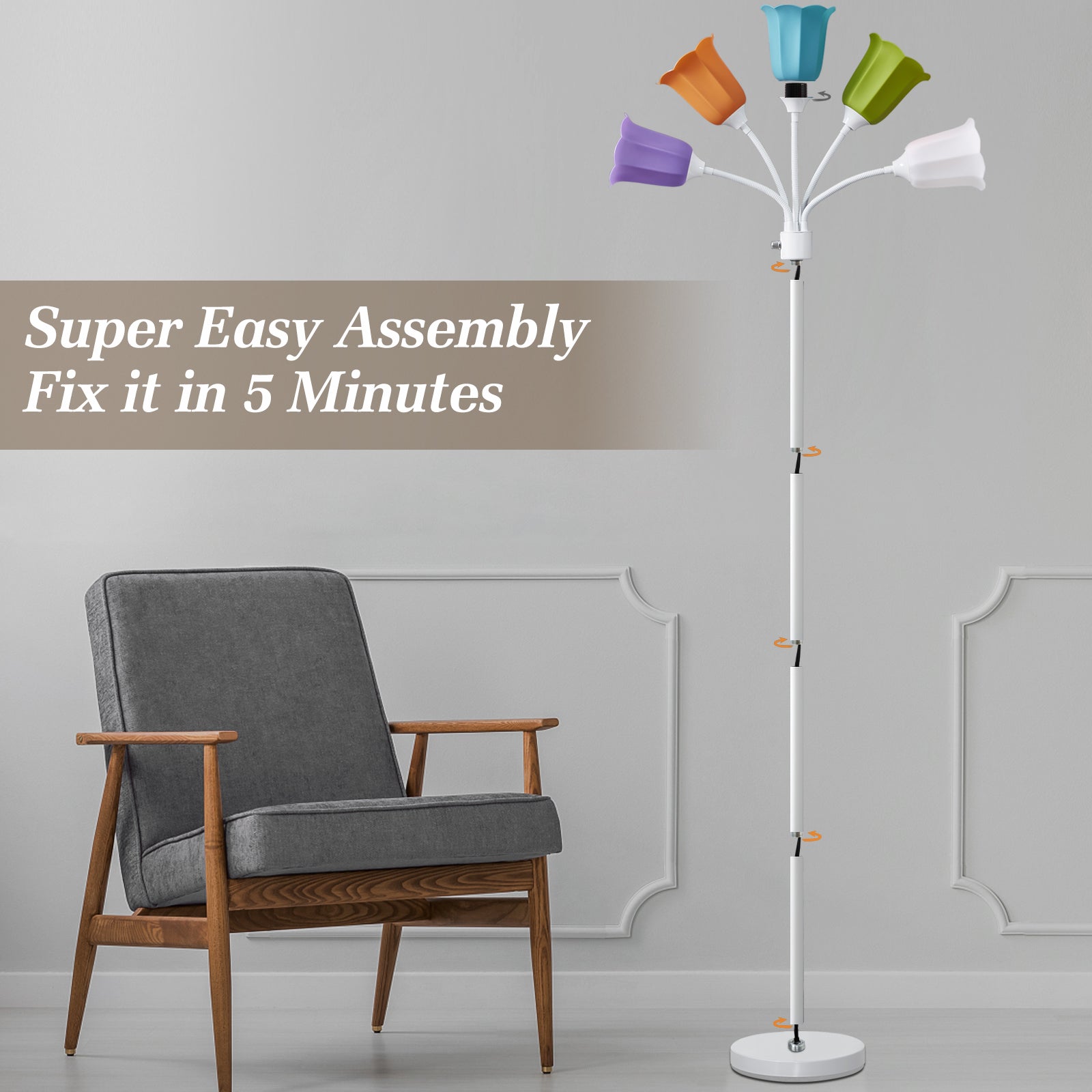 - 【5 adjustable Gooseneck Arms】This medusa floor lamp comes with 5 360° bendable flexible gooseneck arms that allow for accommodate optimal lighting in any circumstances or areas. You can 360° arbitrarily adjust the lamp heads up and down or point it in different directions to add tons of light. perfect for reading, meditating or working or etc thanks to total versatility. Easily light up your home with 5 entire lights.