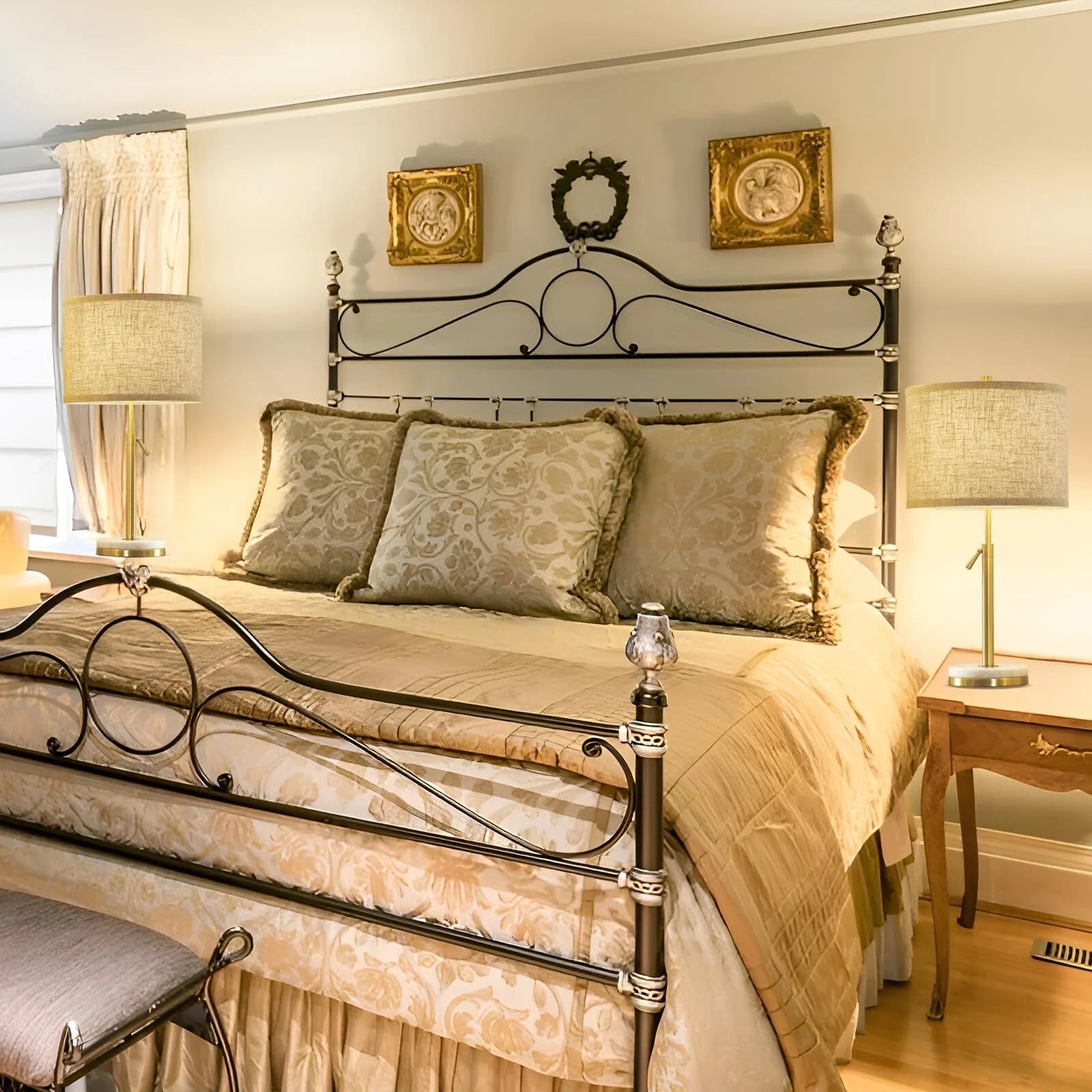 - Special Feature: Easy to assemble, Marble base prevents fading and durable, Fabric lampshade to soften the dazzling light, great adornment and table lamp, height adjustable lamp, Integrated well with any decoration style.