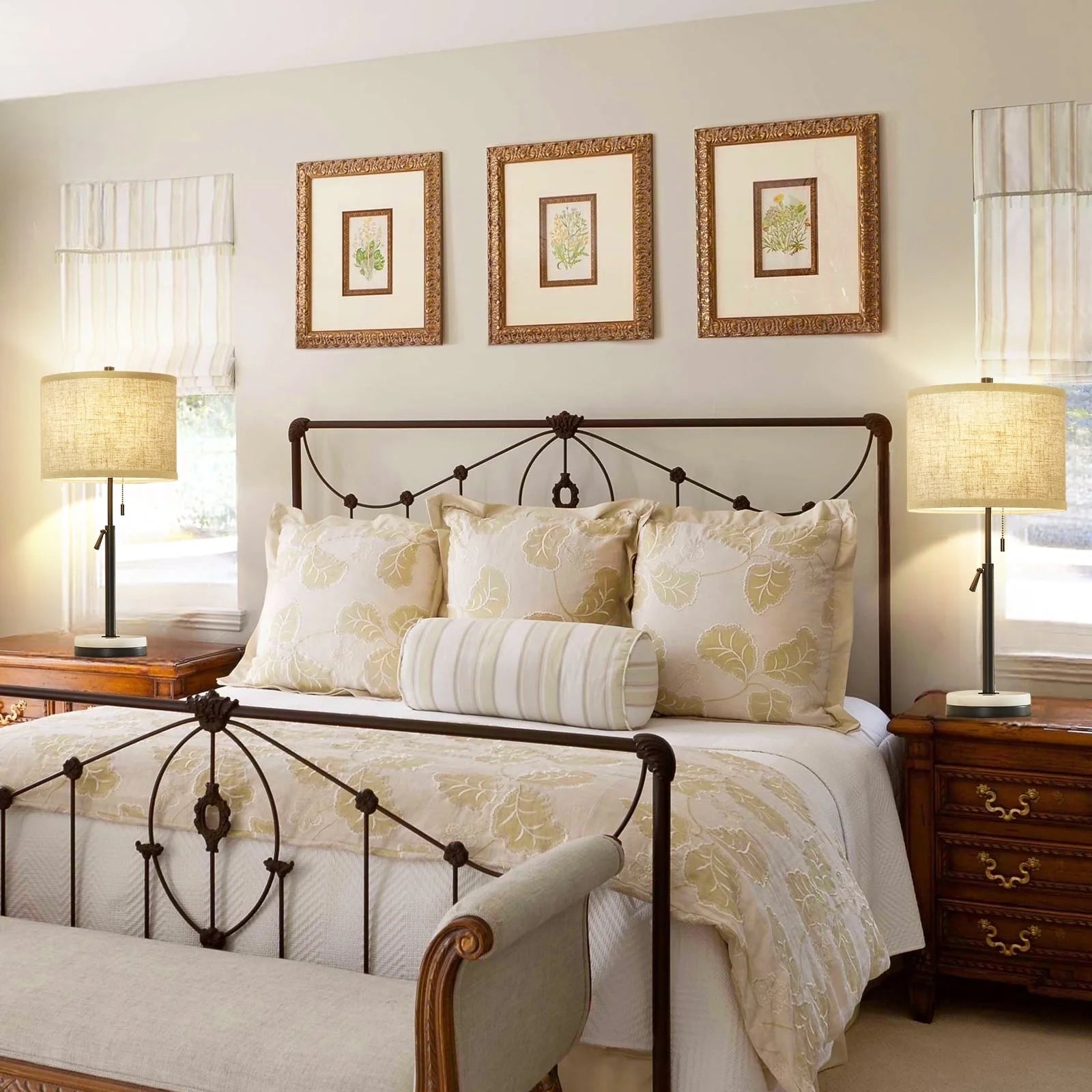 - 【Modern Design & Caring For Eyes】 This table lamp set of 2 is constructed of a fabric round lampshade and a marble base that provides a cozy feeling. It is a great adornment which can be integrated well with any decoration style. The fabric lampshade will soften the luminance, making it bright enough but not harsh.