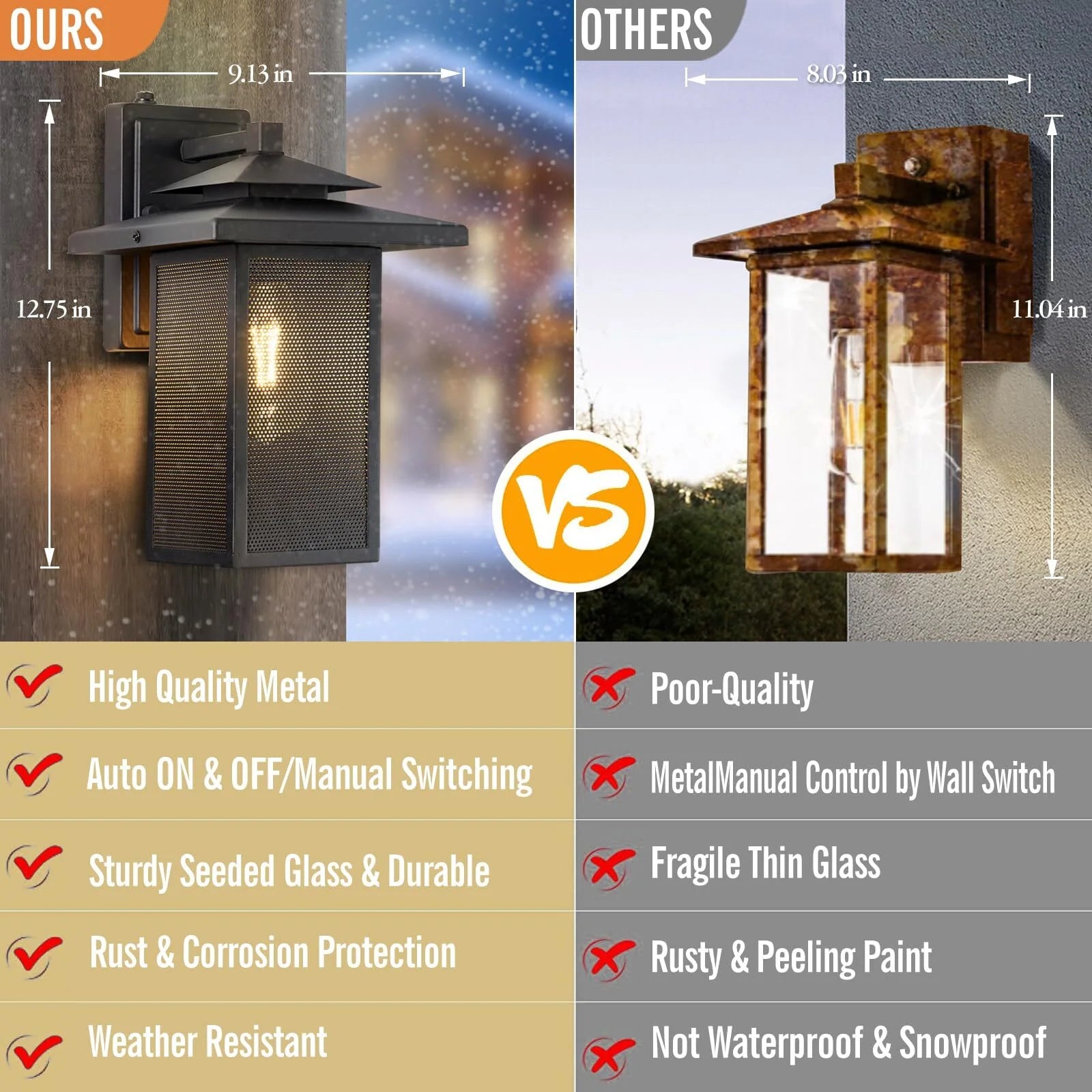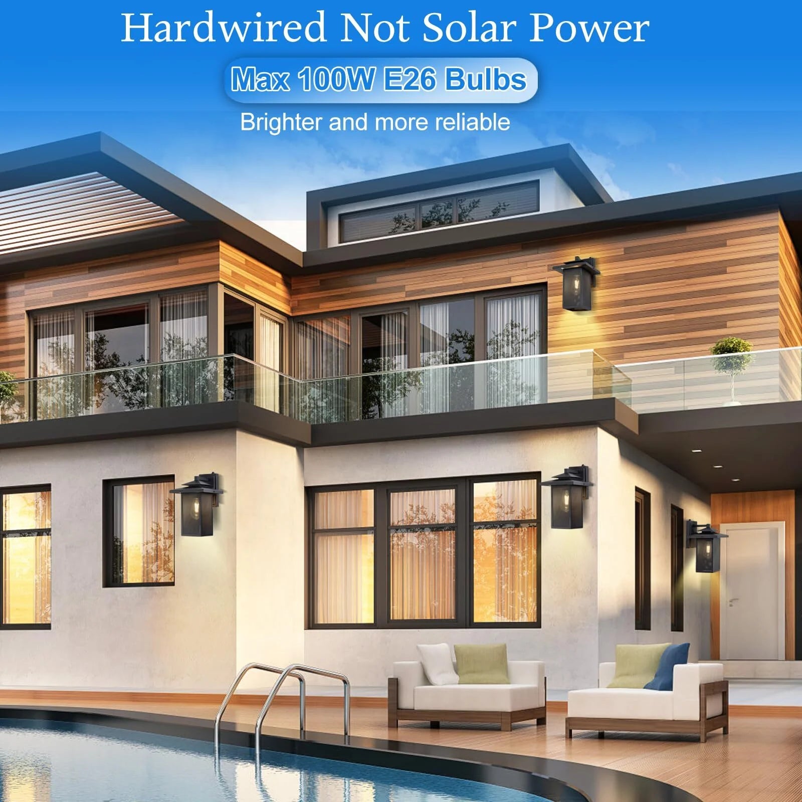 - 【Wide Application】 Idea for outdoor wall lights exterior illumination, lighting up your entire outdoor area with a warm and inviting glow, this outdoor lights for house is perfect for your front door, porch, back deck, garage, hallway, patio, etc.