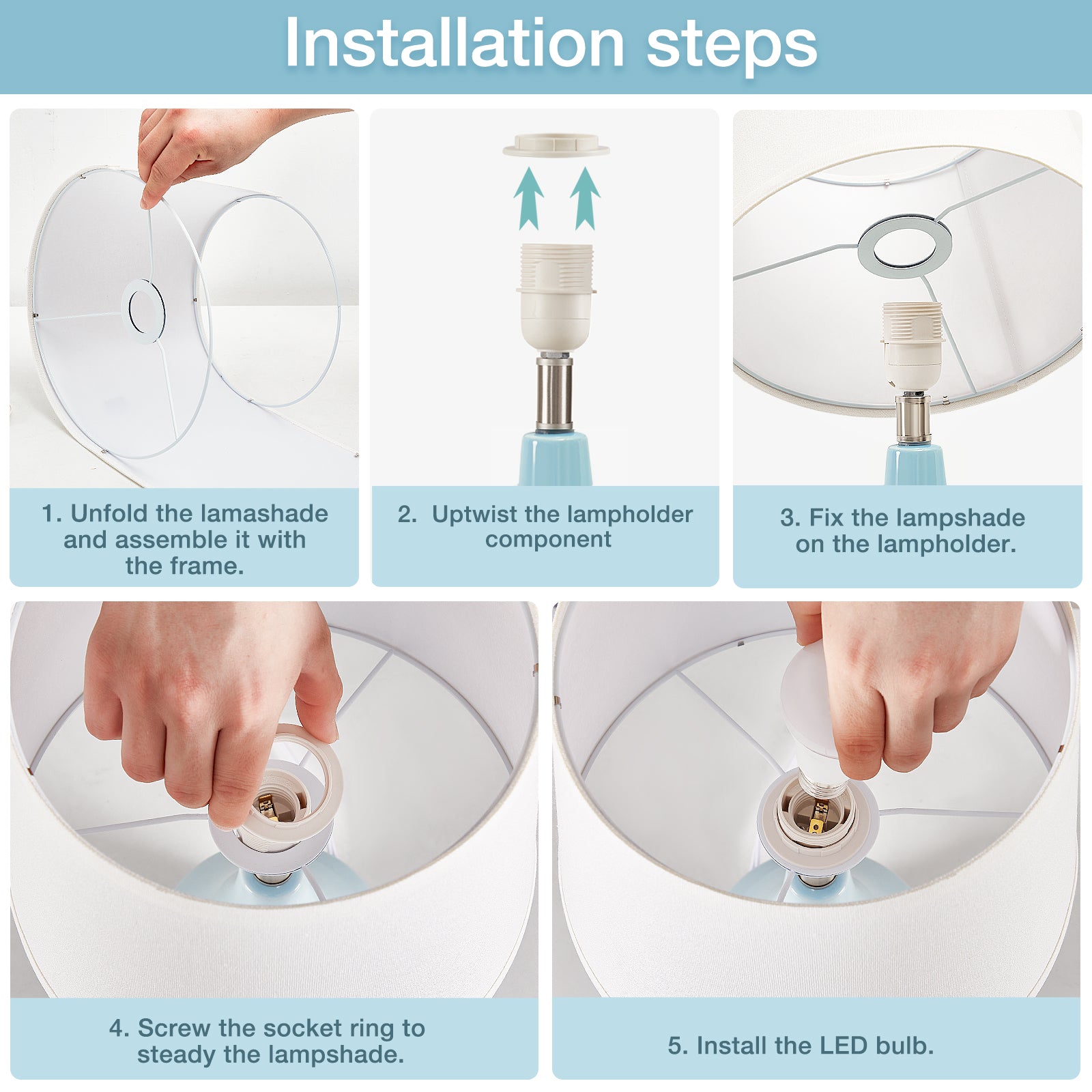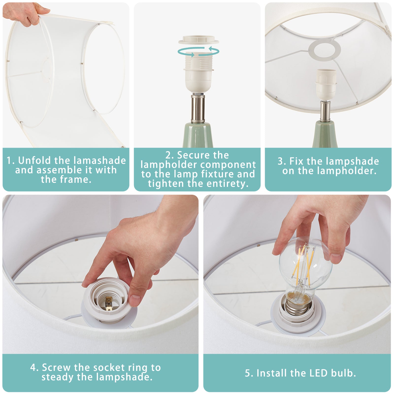 - Priority Quality & Easy Assemble Table lamp Lamps for bedrooms are designed to improve life quality, adding an elegant decor to your place. High-end Ceramic lamp body will not fade as the time goes, durable and convenient to maintain. This table lamp are easy to install without tools. Following the instruction to assemble this lamp shade.