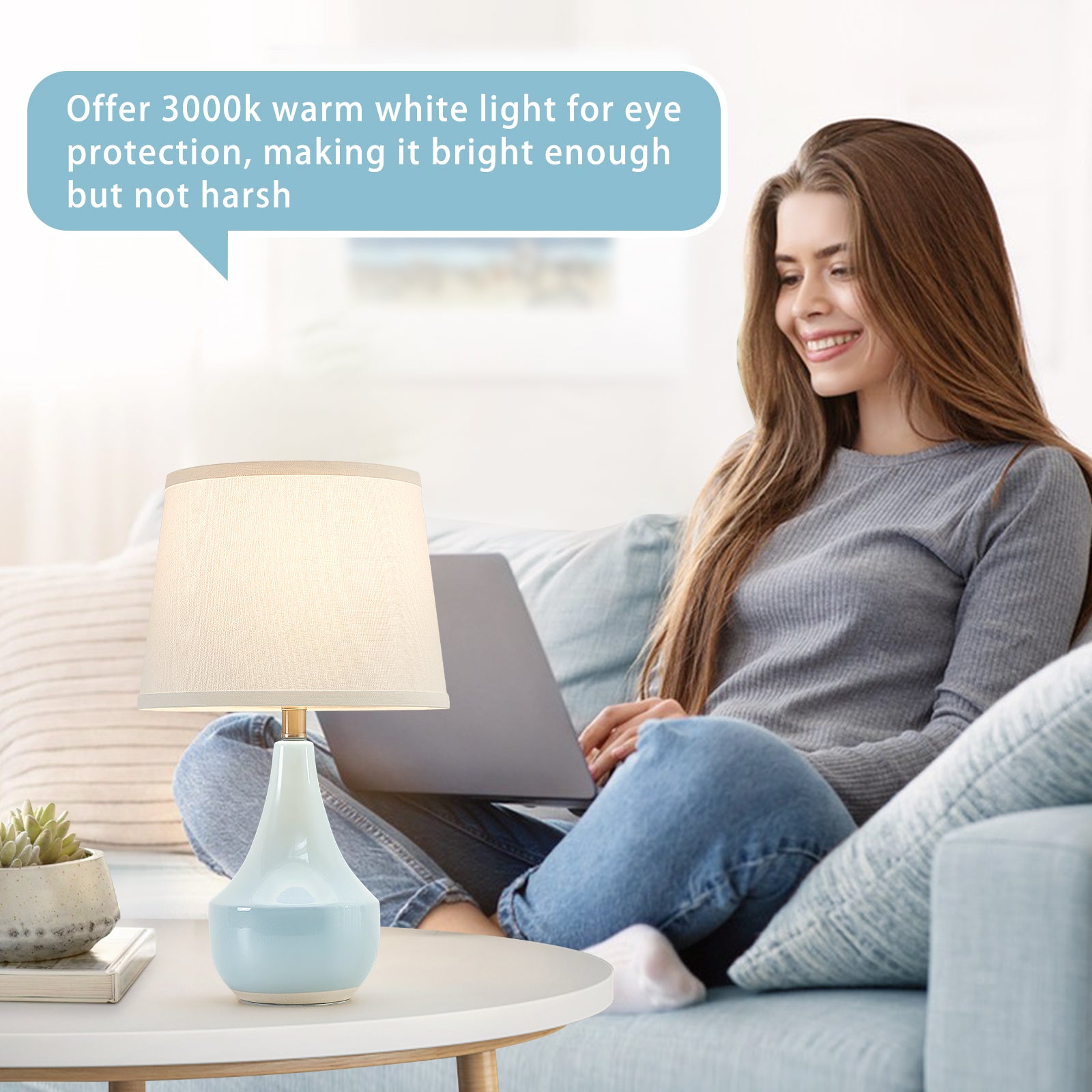 - Modern Styles And Widly Use The beside lamp set of 2 are made with ceramic body, which is modern styles, durable and elegant. With a ceramic lamp body means resistant corrosion and tarnishing waterproof. This table Lamp Set of 2 is an ideal nightstand lamp for living room, bedroom. Also ideal as a gift for family and friends.