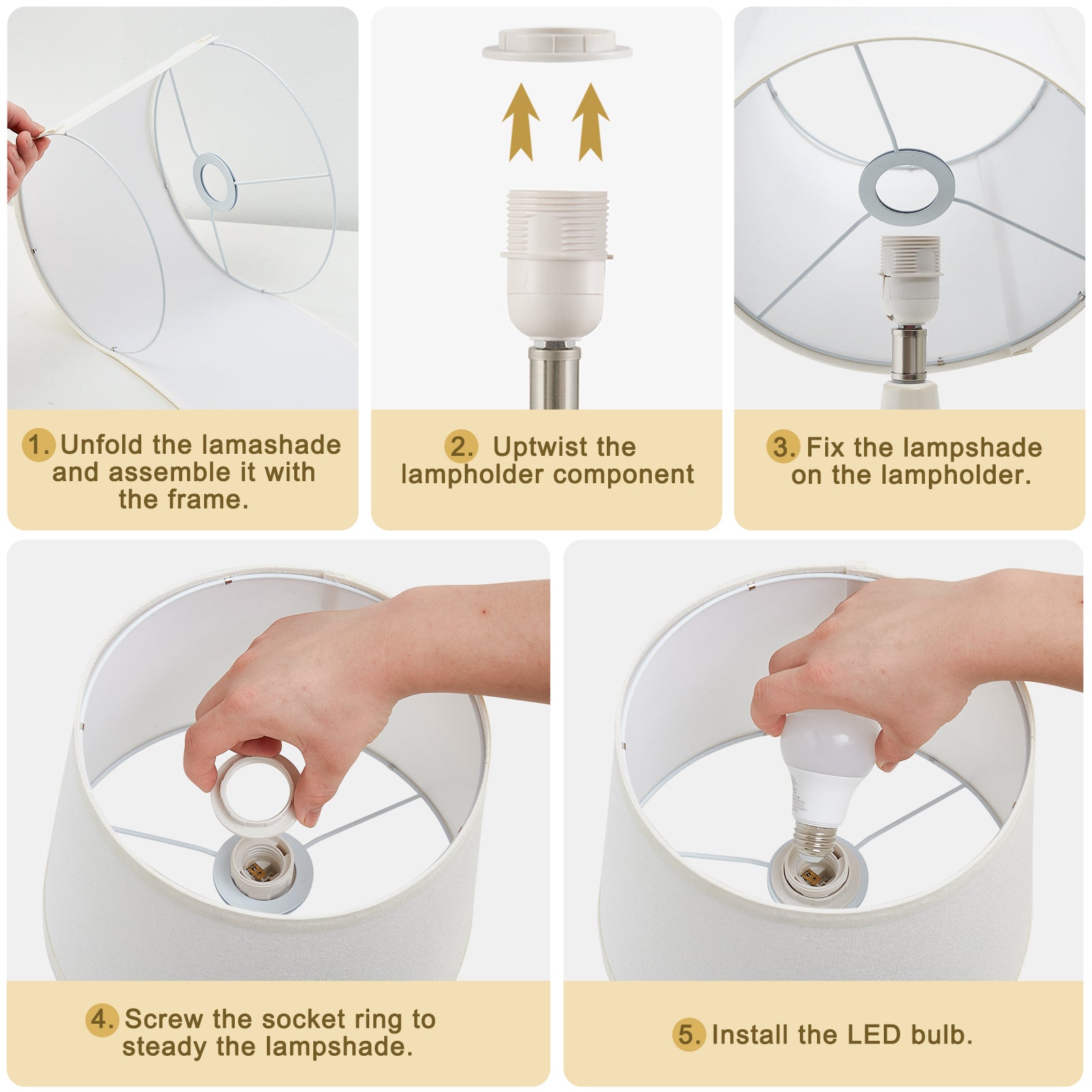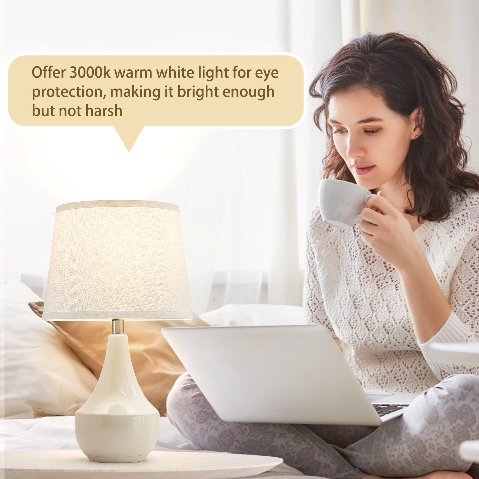 - Offer 3000k Warm White Ligh For Eye Protection This table lamps set of 2 with fabric lampshade soften the light and offer 3000k warm white light, making it bright enough but not harsh, which provides a cozy feeling. With soft light emitted, it can effectively relieve eye fatigue and protect the eyesight of your family. Whether you want to read, write or simply relax, the standing lamp provides ample illumination without straining the eyes.