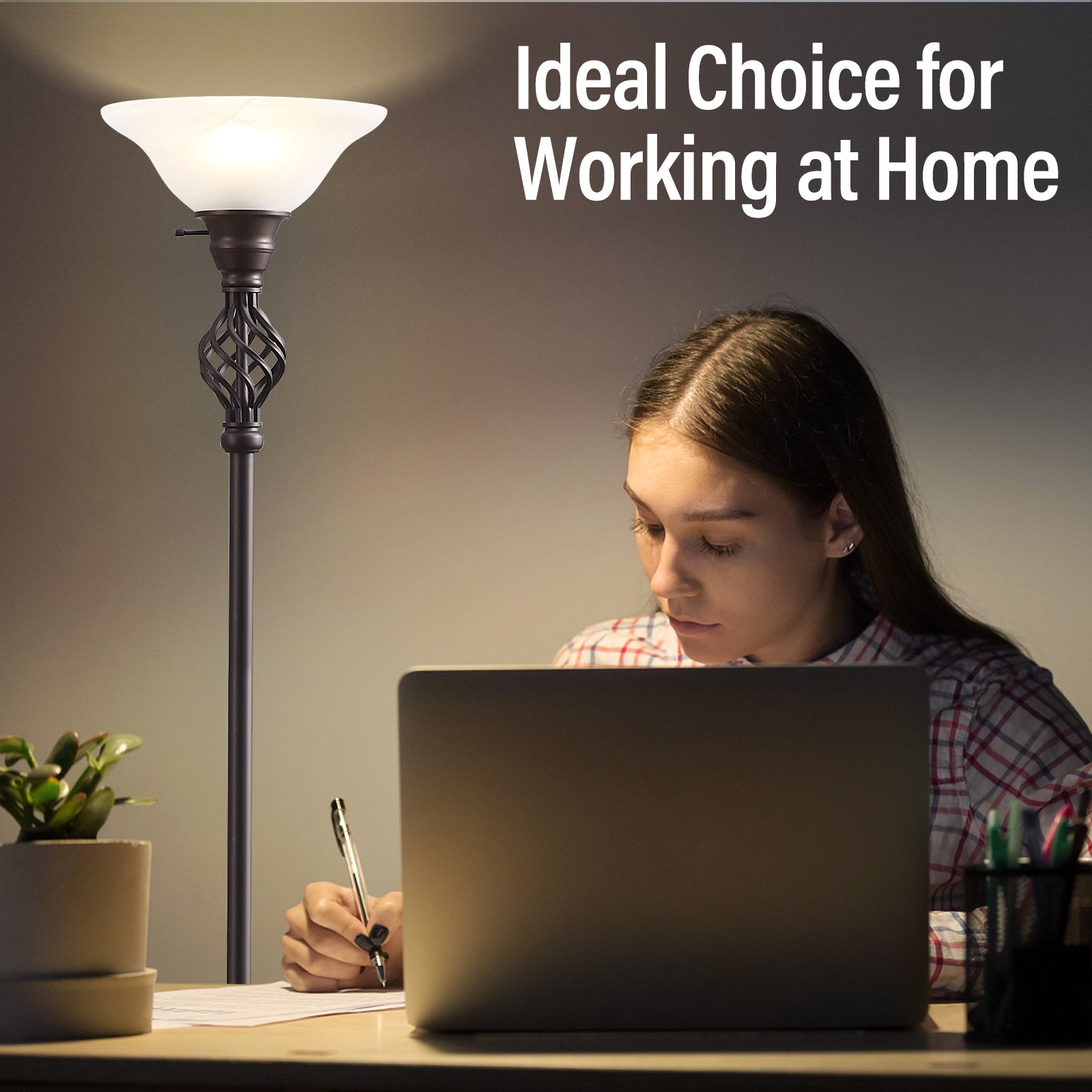 - Modern Floor Lamps for Living Room: a 72-inch tall metal pole with glass shade that does not heat up or crack easily. This torchiere floor lamps also has excellent light transmission and lighting volume, which can easily illuminate your home space. The design of the lamps for the living room is suitable for any room style, making them an ideal addition to your home