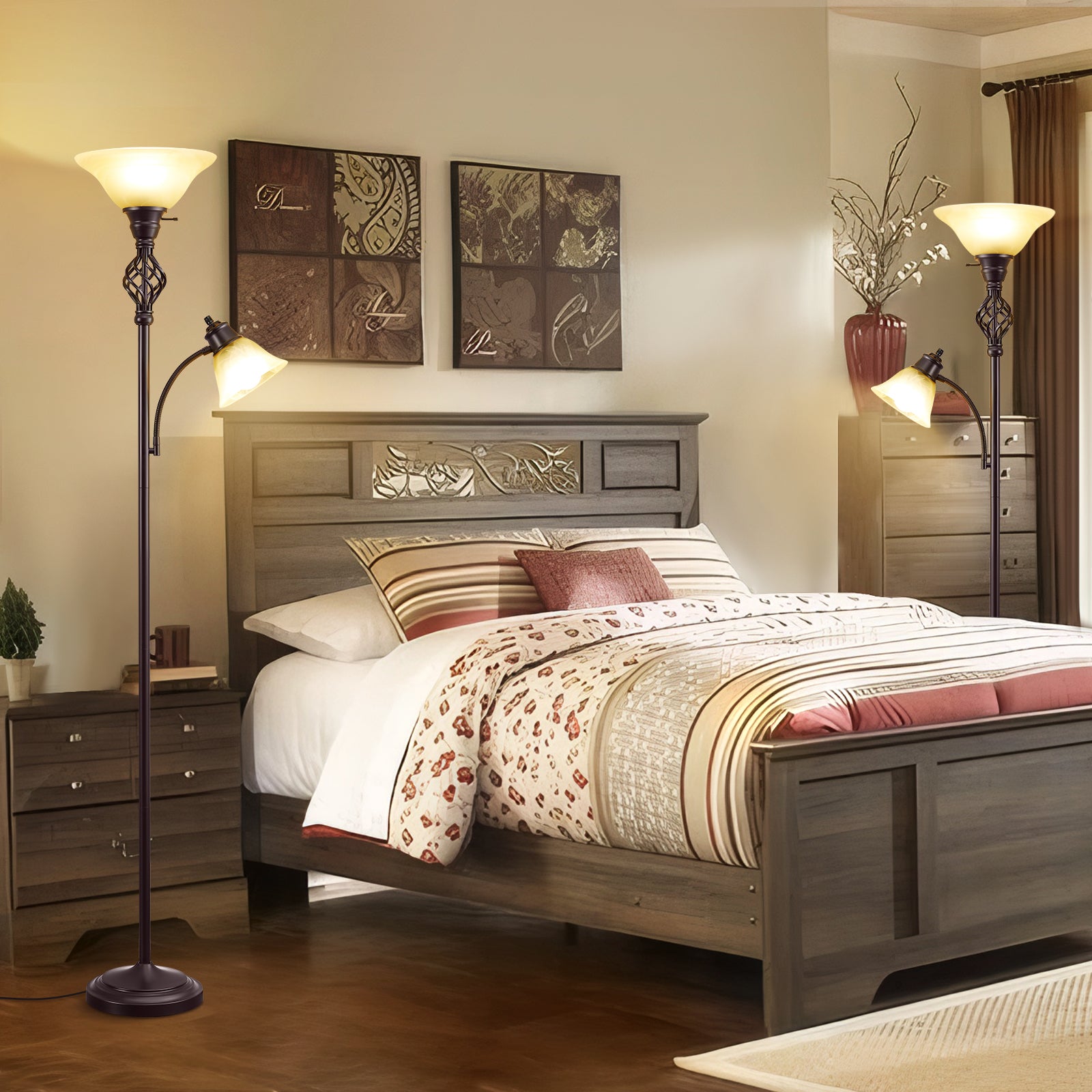 NATYSWAN Standing Lamp with Adjustable Side Reading Light, Floor Lamps for Living Room with Glass Shade 72-Inch Torchiere Tall Lamps Decor for Bedroom Living Room Den Office (Bulb Included)