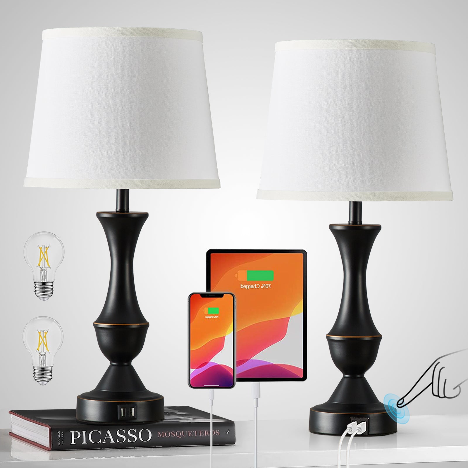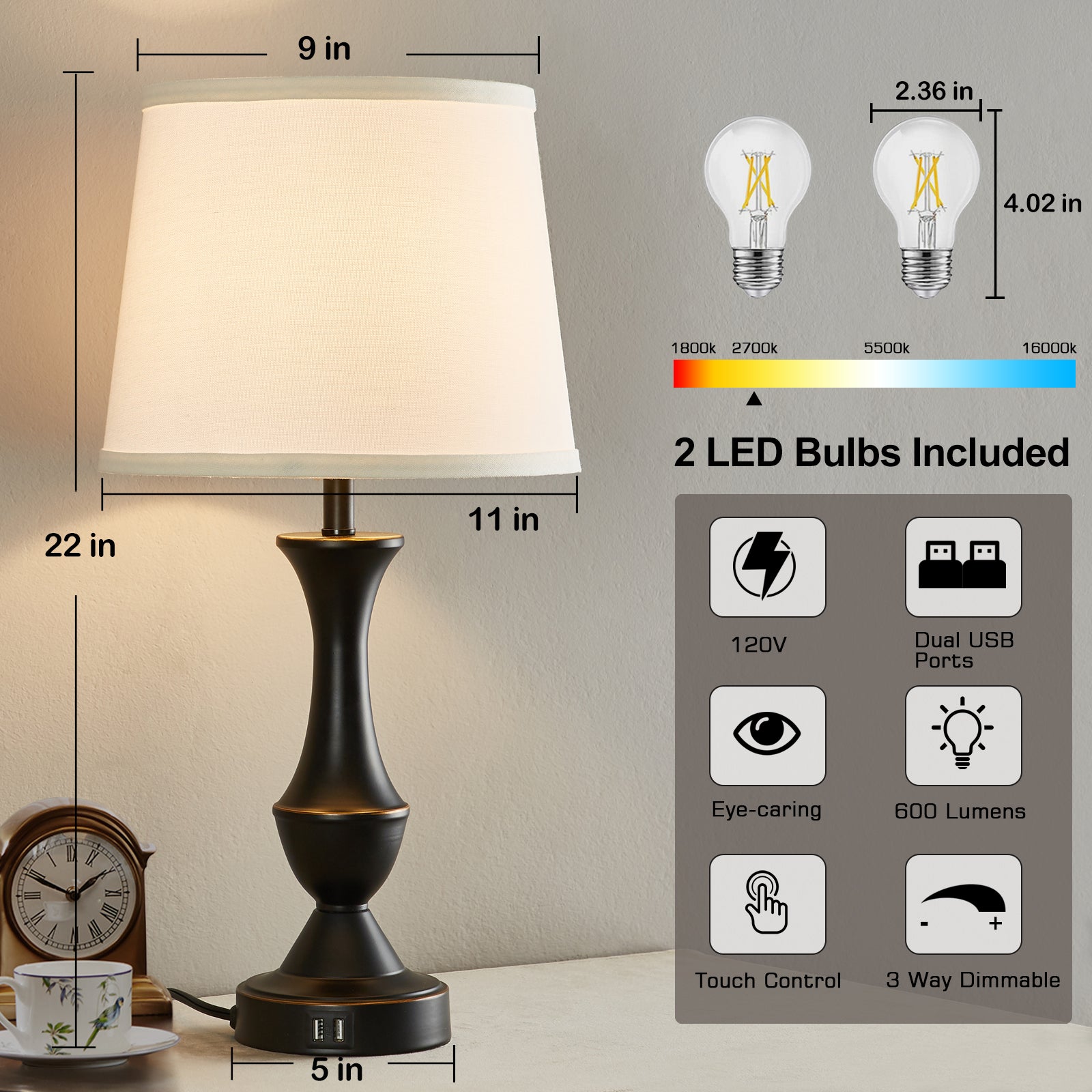 Natyswan Touch Lamps for Bedrooms Set of 2, Bedside Lamp with Dual USB Charging Ports, 3 Way Dimmable Nightstand Lamps with Premium Linen Fabric Lampshade for Bedroom, Living Room (Bulb Included)